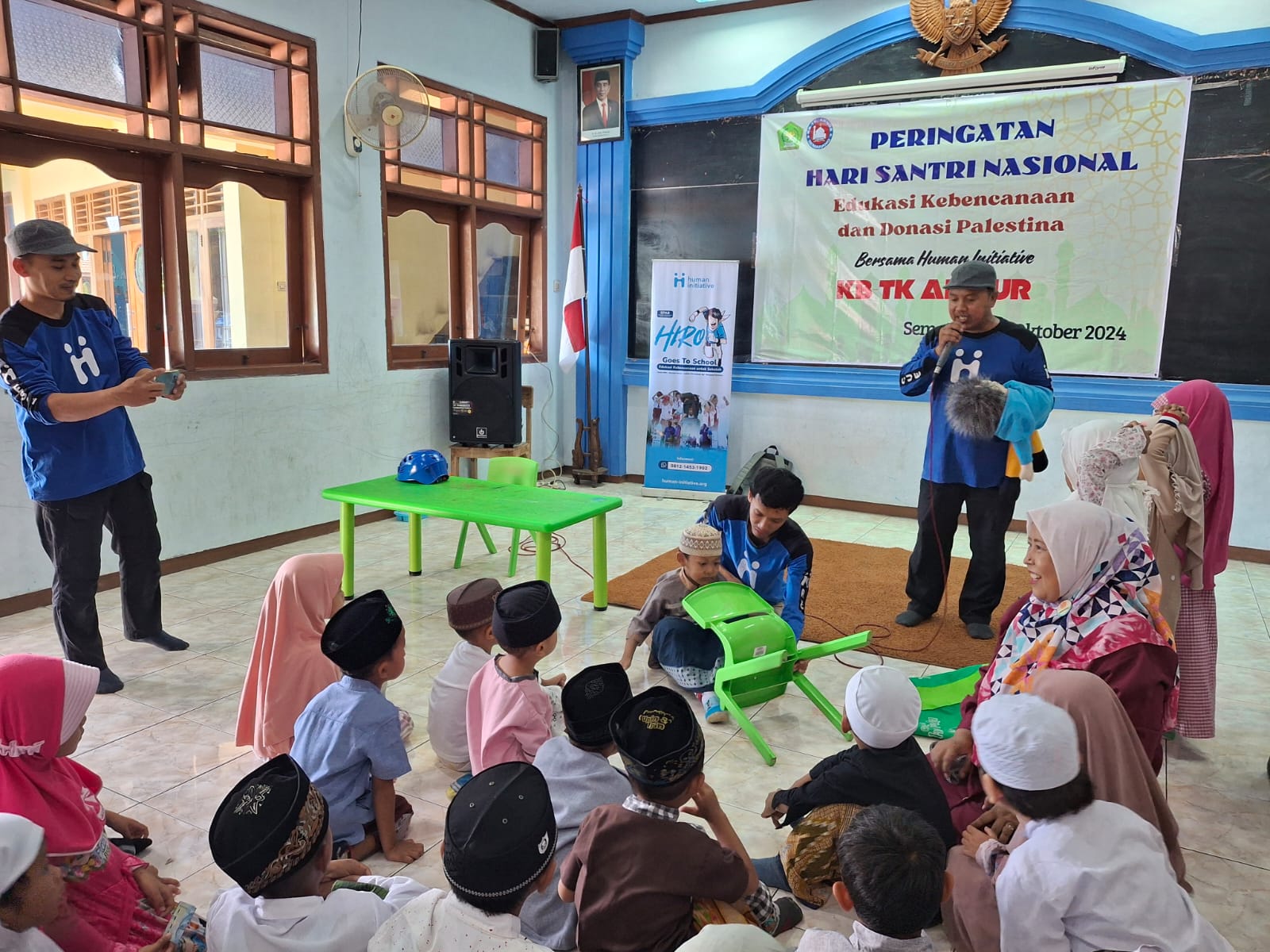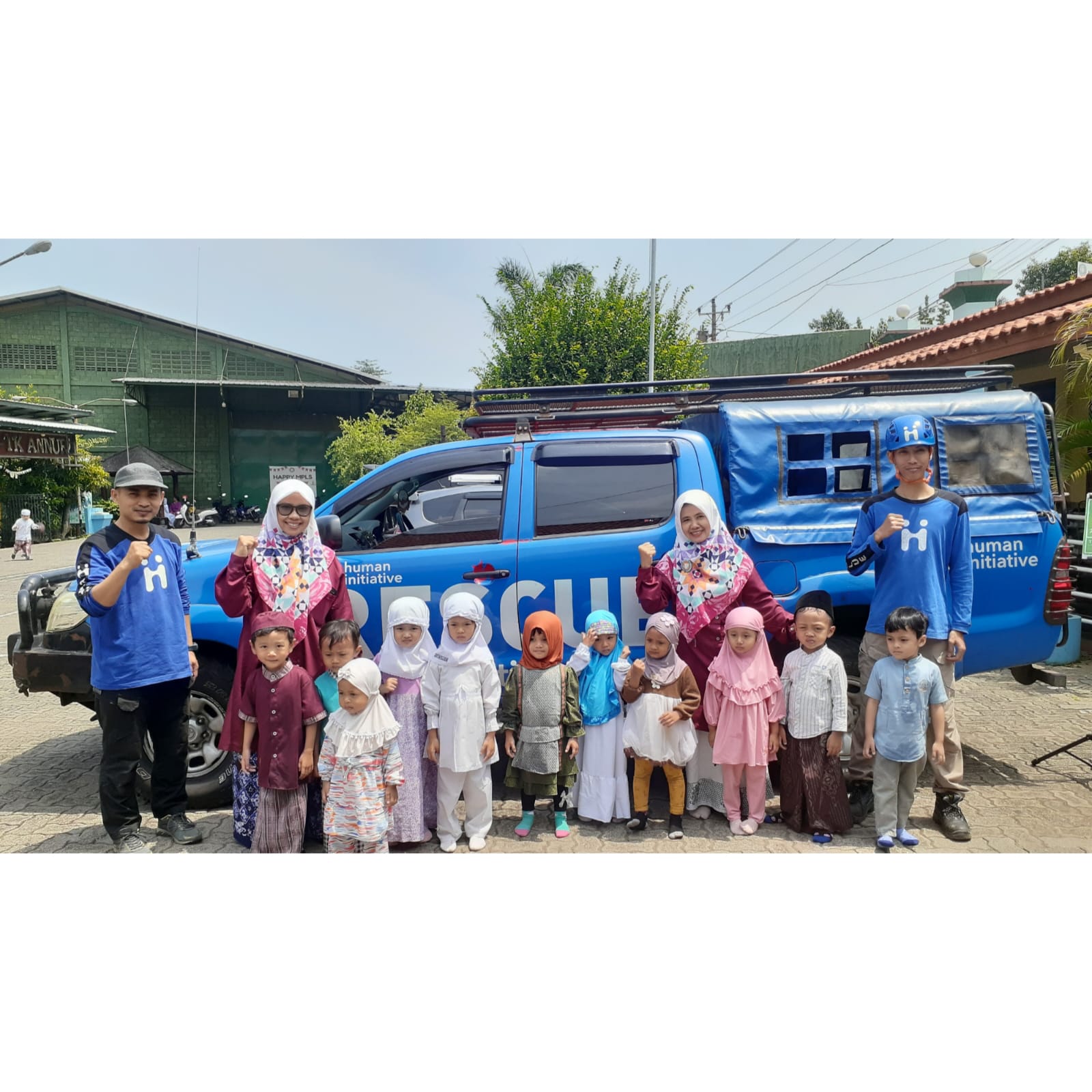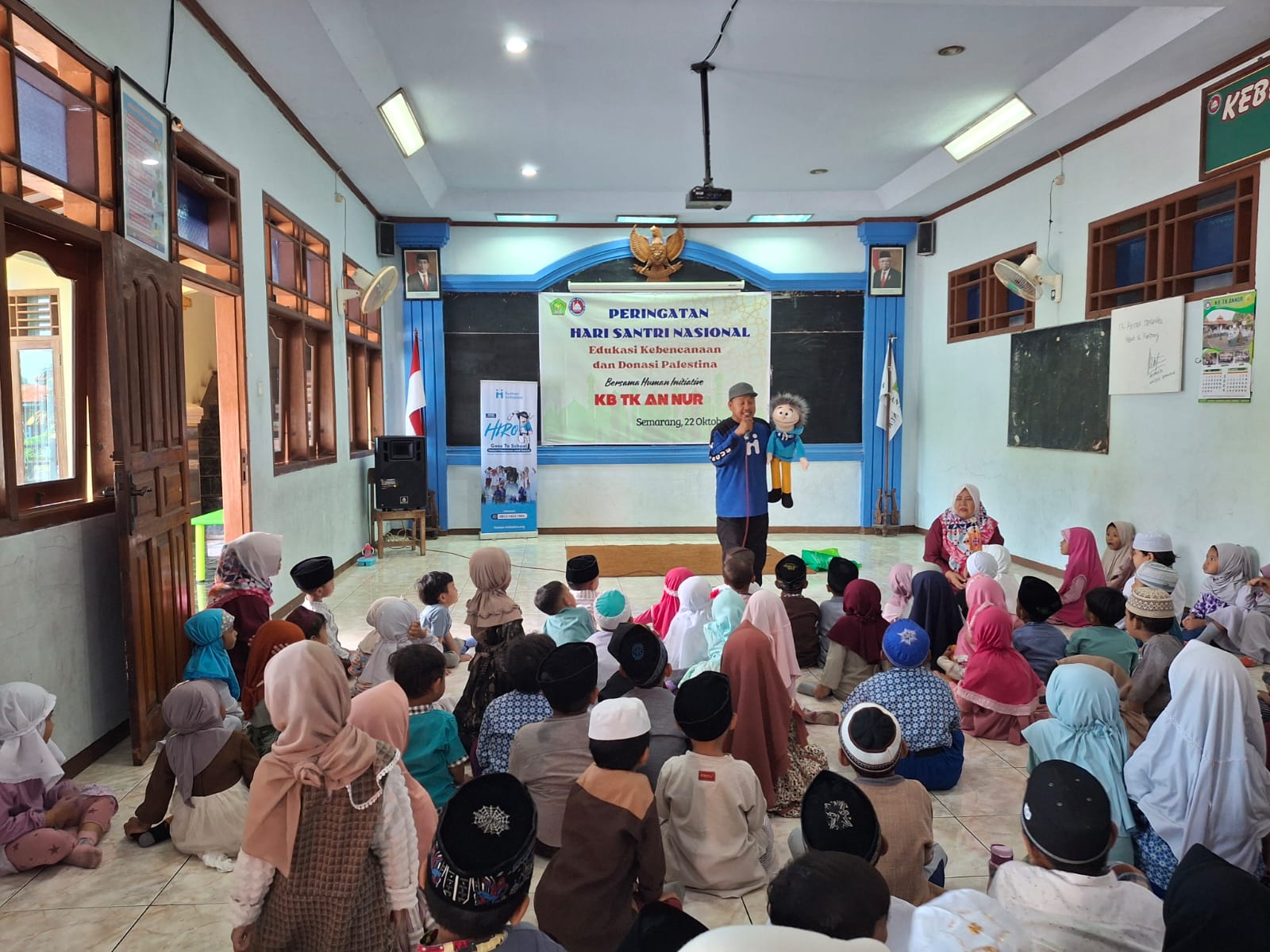 Anak-Anak KB-TK ANNUR Semarang belajar tentang kesigapan menghadapi gempa bumi melalui edukasi kebencanaan bersama Tim Human Initiative.